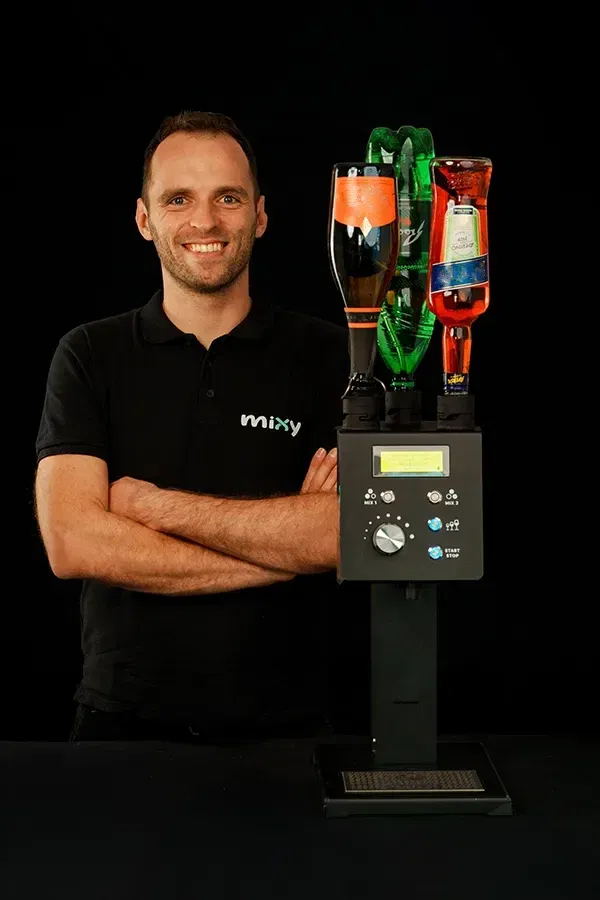 Korištenje Mixyja je jednostavno. Kao vlasnik, prvo postavite koja ste pića spojili na uređaj ili koji recept želite natočiti. Za točenje pića okrenite kotačić kako biste prilagodili omjer između dva pića prikazana na ekranu (npr. Vino 50% / Voda 50%). Po potrebi možete odabrati i željeni volumen pritiskom na gumb (npr. 1, 2 ili 3 dl). Kada ste zadovoljni omjerom i količinom, jednostavno pritisnite gumb START i Mixy će poslužiti vaše piće.